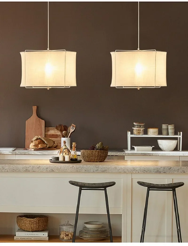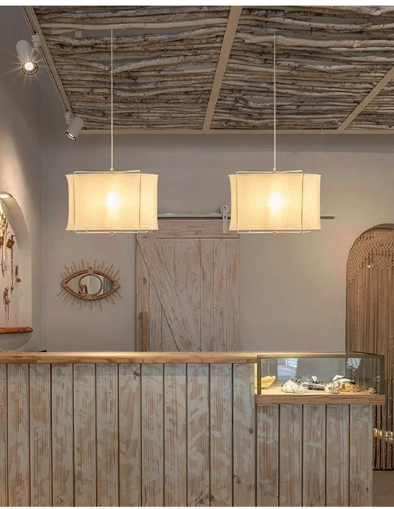 Wabi Sabi Style Cotton Linen Fabric Pendant Lamp Dining Table Restaurant Hotel Bedroom Retro Counter Handmade Art Bedroom Lamps